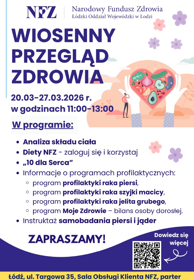 Tydzień 20 - 27 marca trwa Wiosenny Przegląd Zdrowia w ŁOW NFZ