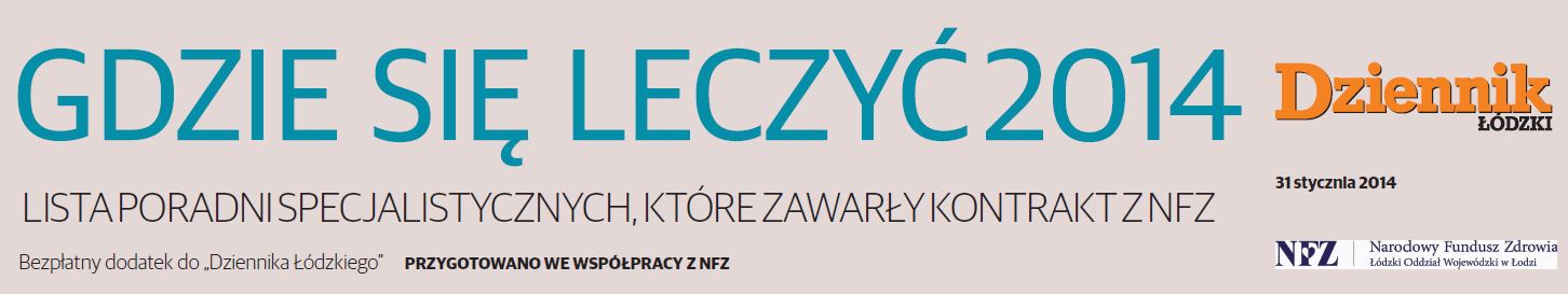 W dniu 31 stycznia 2014 (piątek) ukaże się przygotowany we wspołpracy z Łódzkim Oddziałem NFZ dodatek do Dziennika Łódzkiego Gdzie się leczyć bezpłatnie. Znajdą w nim Państwo listę wszystkich placówek specjalistycznych, które podpisały umowę z Łódzkim Oddziałem NFZ na bezpłatne leczenie. W dodatku znajdą Państwo także wywiad z dyrektorem ŁOW NFZ, Panią Jolantą Kręcką na temat badań profilaktycznych.