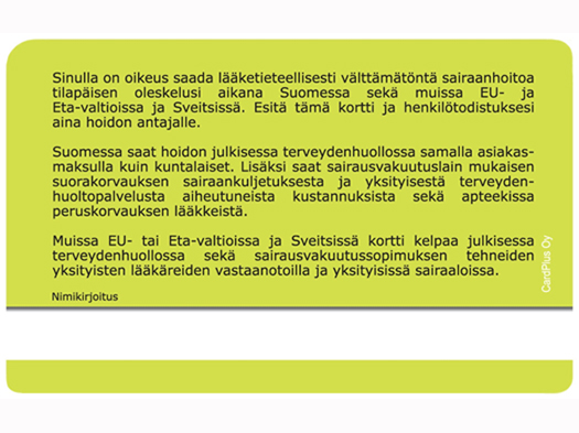 Karty są łatwe do rozpoznania. Awers karty wygląda tak samo we wszystkich krajach i zawiera te same informacje zapisane w języku danego kraju. Rewers karty może różnić się w zależności od państwa. Aby zobaczyć, jak wygląda karta w danym kraju, kliknij na obrazek poniżej.
