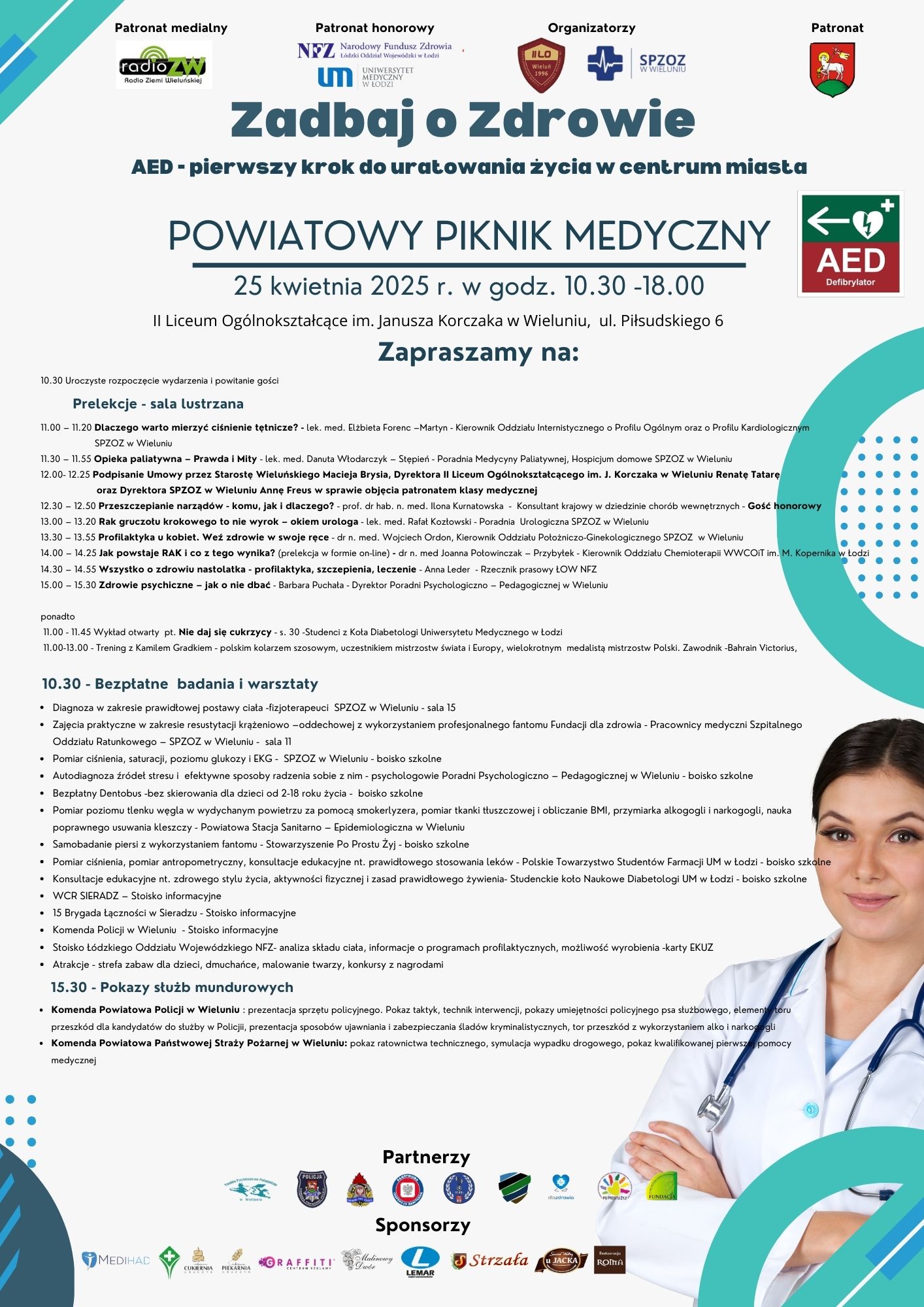 25 kwietnia - zapraszamy na Powiatowy Piknik Medyczny w Wieluniu